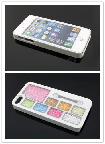 Nine States High Quality Bling Colorful Crystal Filled Eye Shadow Make-up Palette Pattern Back Case Cover for iPhone 5/iPhone 5S ( White Frame with Colorful Crystal)